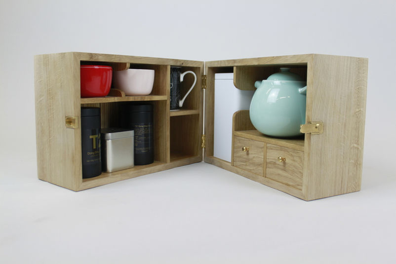 Britain has an incredible history of tea-making and tea-culture. We’ve got to the point where tea can be acquired almost anywhere, and the morning tea-break is observed nationwide. With this ubiquity though, much of the ceremony surrounding a proper cuppa has been lost. The Tea for Two cabinet is intended to address this, providing a special case for a special tea service, and a few of your favourite varieties. Space for two mugs and a two-mug pot show that this a modern answer to a traditional social ritual: a cuppa and a chat.